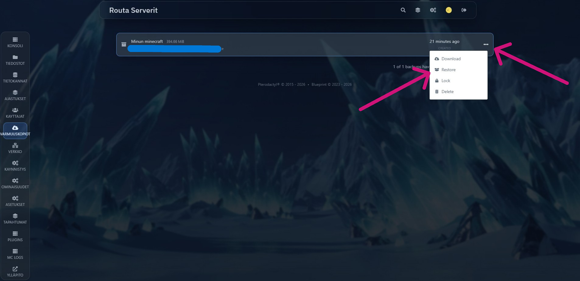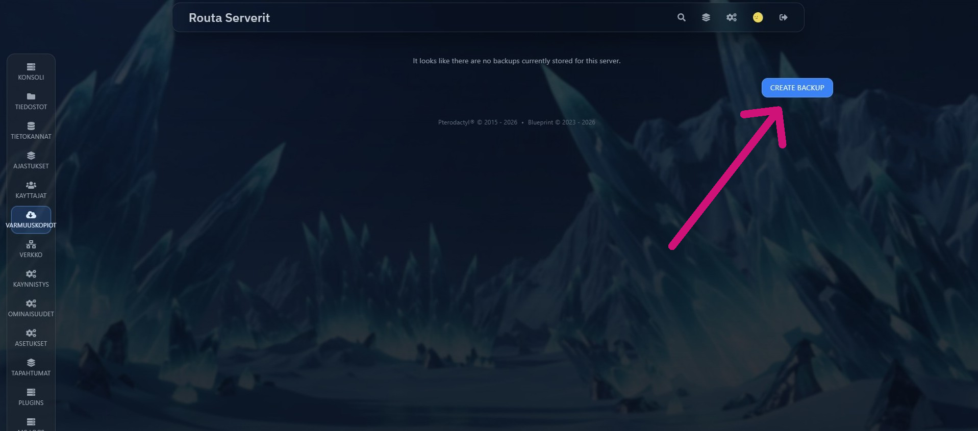 Varmuuskopio on "aikakone", jonka avulla voit palauttaa palvelimesi tiedostot aiempaan ajankohtaan. Suosittelemme ottamaan varmuuskopion aina ennen useiden pluginien asentamista tai suurten päivitysten tekemistä.
