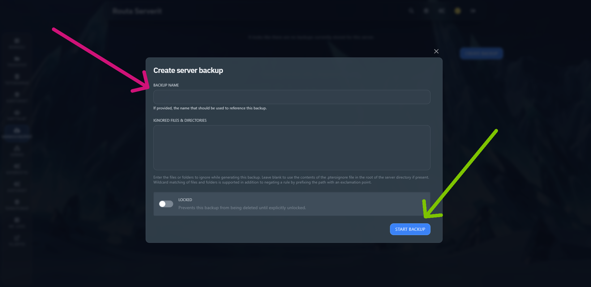 Anna varmuuskopiolle nimi (esim. "Ennen Lifesteal-asennusta" tai päivämäärä).